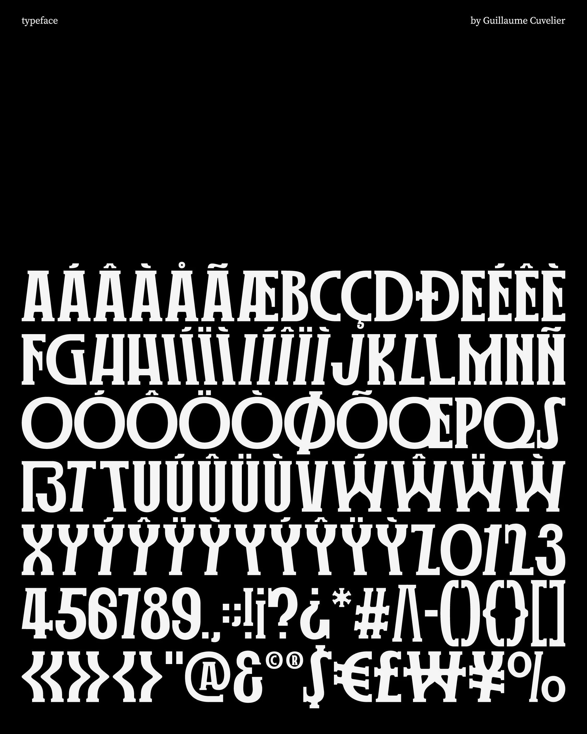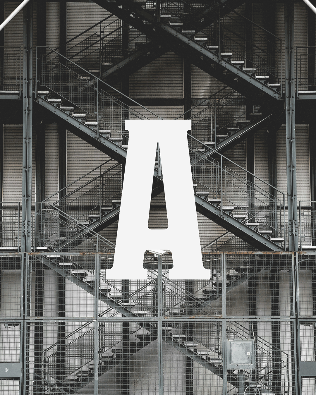 Police de caractères display à empattements, inspirée par l’architecture brutaliste.